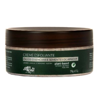 Creme esfoliante com sementes de apricot e óleos essências de lavanda, laranja, lemongrass e alecrim.
