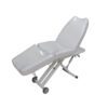 Mesa com regulagem de altura elétrica feita por moto-redutor, isento de óleo, projetado e fabricado na Alemanha para uso em equipamento médico-hospitalar. Dorso e apoio para os pés com regulagem manual. Estofado relax.