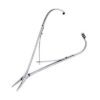 Instrumento articulado não cortante produzido em aço inox AISE 420 com 14 cm de comprimento.